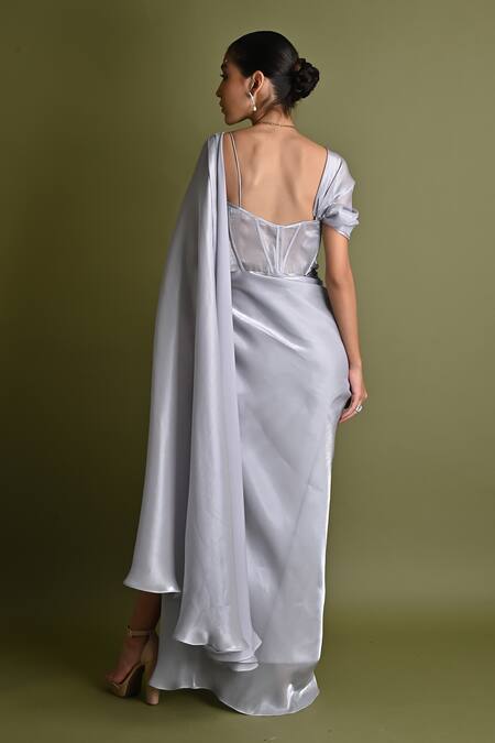 Grey Polyester, Organza Cut Work, Sequins Sweetheart Metallic Embroidered Gown