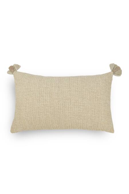 Cream Front 51% Linen, 49% Ananya Textured Pattern Cushion Cover - Set Of 2