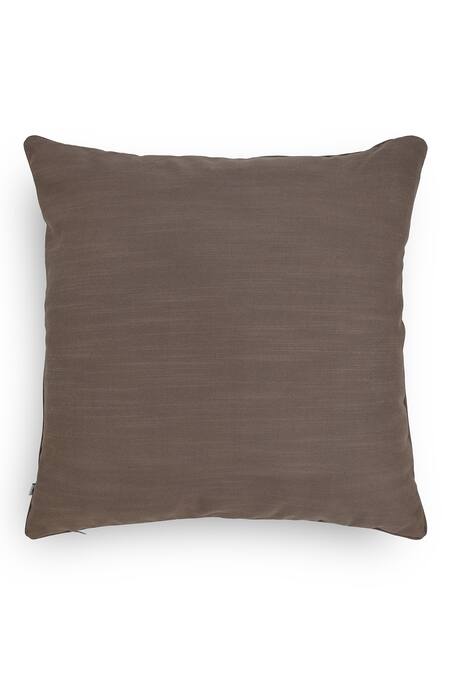 Brown 10% Viscose, 86% Linen, 4% Lahar Hand Embroidered Cushion Cover - Set Of 2