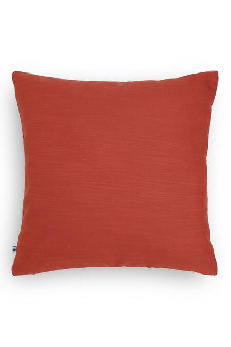 Rust thread embroidered set of 2 cushion cover in floral pattern & tassel on the edges.