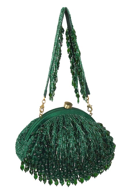 Buy_Lovetobag_Emerald Green Embroidery, Crystals, Beads Opal Embellished Soft Pouch _at_Aza_Fashions