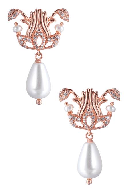 Leaf motifs with carved detail, Pear-shaped pearl drop, Bead drops with stone embellishments