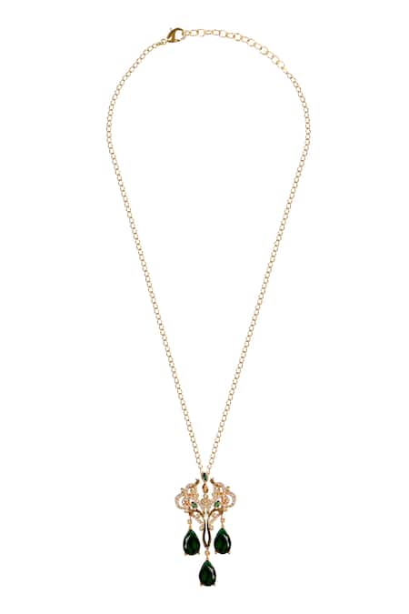 22k gold plated floral carved pendant necklace featuring white and green emerald with crystal embellishments
