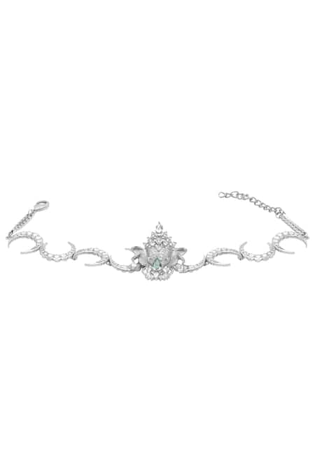 Crescent moon and elephant motif design, Sparkling crystal embellishments, Handcrafted details
