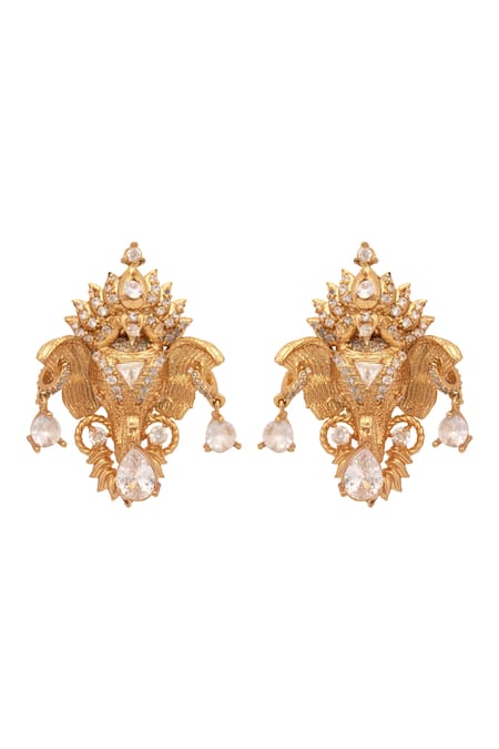 Gold Plated Crystals Handcrafted Elephant Motif Ear Studs