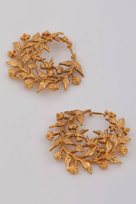 Gold Plated Embroidery Handcrafted Floral Carved Hoops