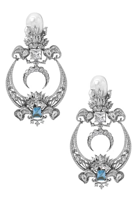 Silver Plated Crystals, Cut Work Lotus Motif Chandbalis