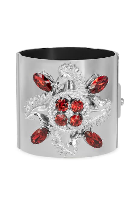 Handcrafted with stallion details, Floral carved work, Embellished with red & white Swarovski stones