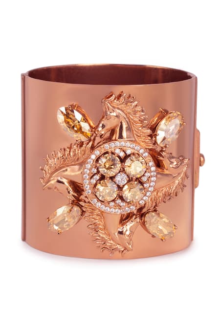 Carved horse patterns on the bracelet, Swarovski stone embellishments, Push back clasp for secure fit