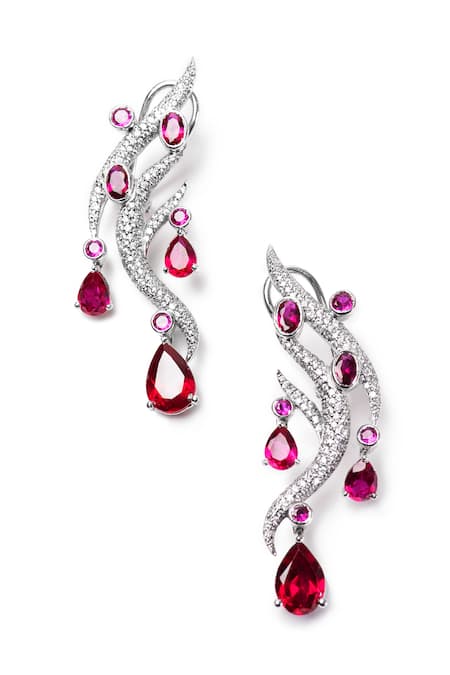 Silver Plated Stones Waves Swarovski Embellished Earrings