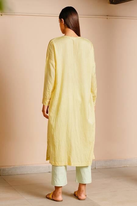 Shop_Ayaka_Yellow 100% Organic Cotton Stripes Made With Orange Fibres Floral Keyhole Dress_at_Aza_Fashions