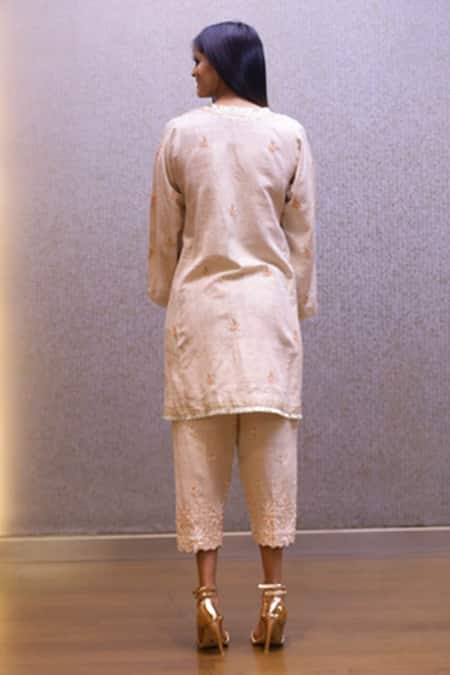 Buy_Rina Dhaka_Peach Organic Handloom Cotton Kurta And Pant Set_at_Aza_Fashions
