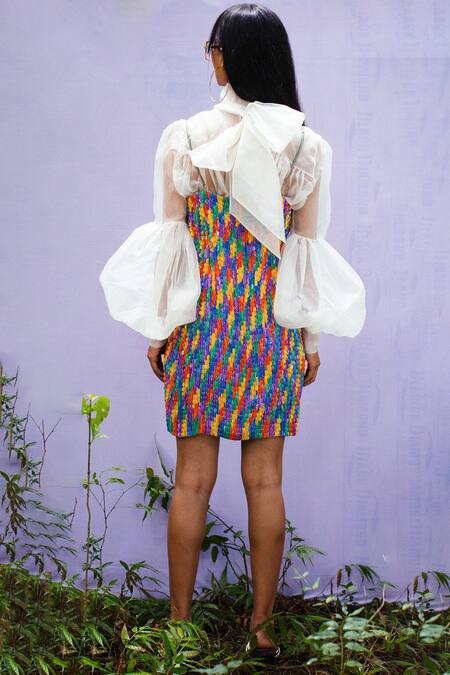 White Organza And Cutdana Work High Top