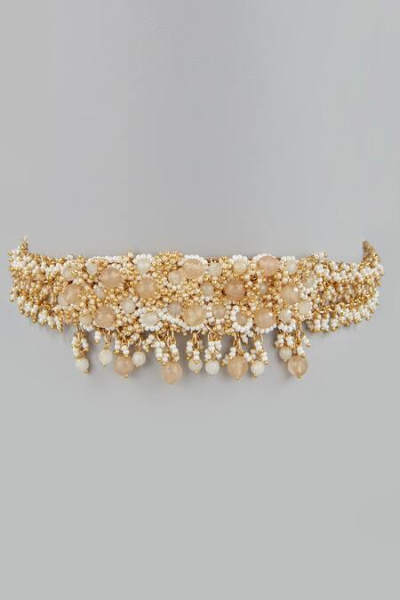 Buy_House Of D"Oro_White Mother Of Pearls Oriella Embellished Choker_at_Aza_Fashions