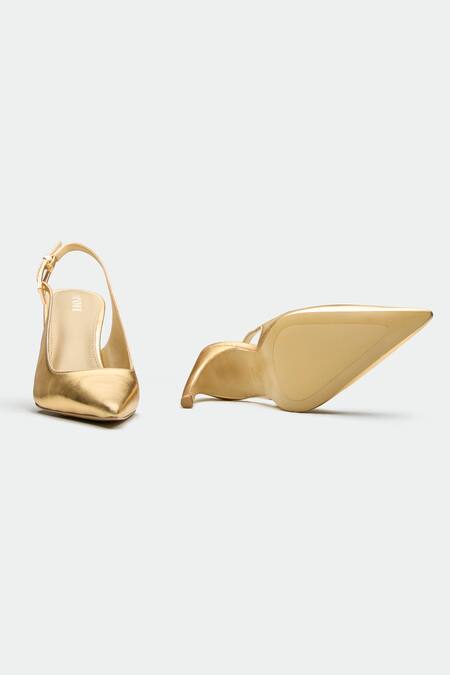 Gold slingback heels featuring a pointed toe design with a 3