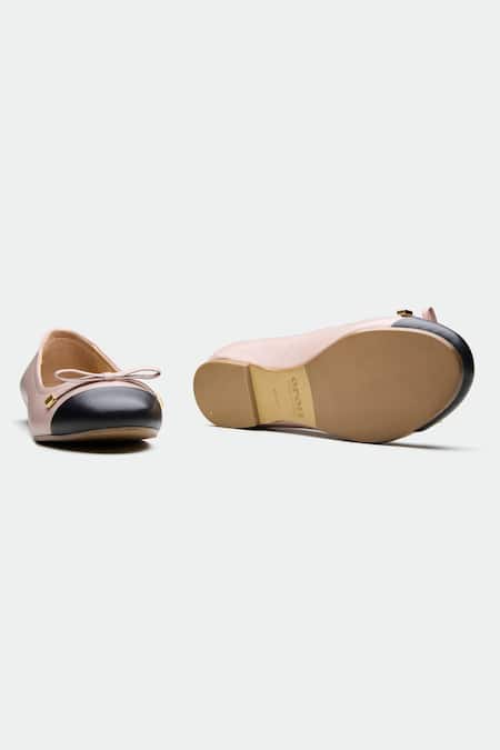 Bow detail on the front, Contrasting black toe cap, Gold-tone accent on the side
