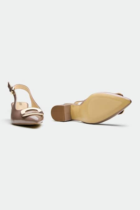 Decorative buckle detail on the toe, Sleek pointed toe design, Comfortable slingback strap