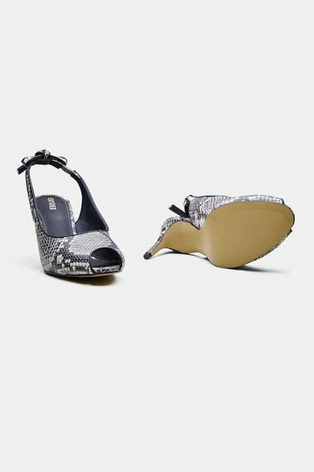 Slingback design with bow details, Peep-toe opening, Textured snakeskin pattern