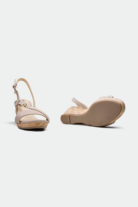 Beige Gold Dundee Wedge Sandals