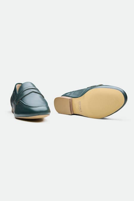 Green Genuine Leather Walsall Flats