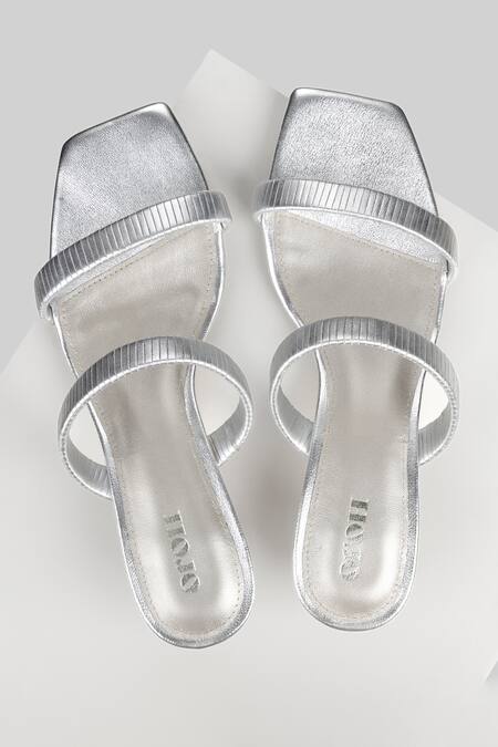 Buy_Oroh_Silver Square Front Textured Sandals_Online_at_Aza_Fashions