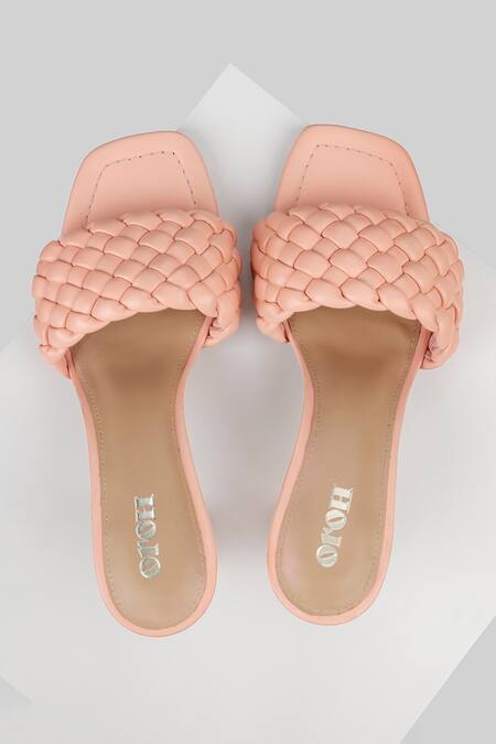 Peach Cut Work Paterna Basket Weave Sandals