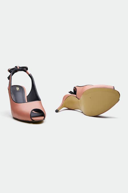 Pink open-toe heels crafted from genuine leather featuring a slingback design with a bow detail