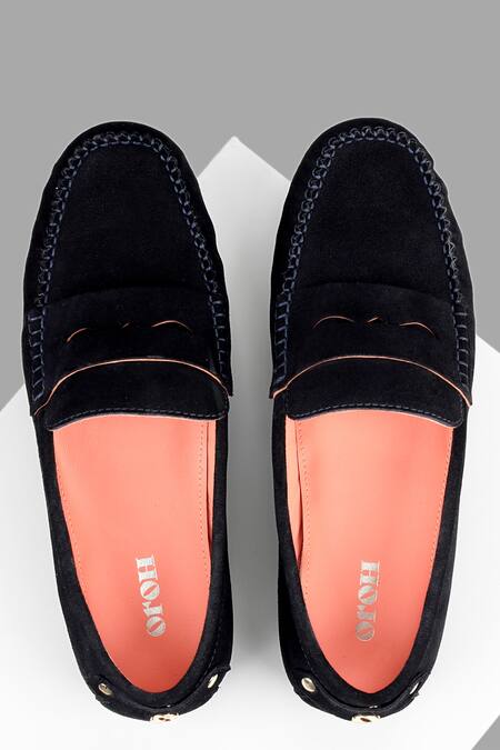 Blue moccasin crafted from cow suede featuring a round toe design