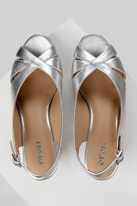 Silver Segovia Metallic Criss Cross Strap Wedges