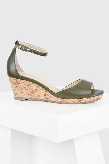 Buckle closure for secure fit, Cork wedge heel for comfort, Plain strap design for simplicity