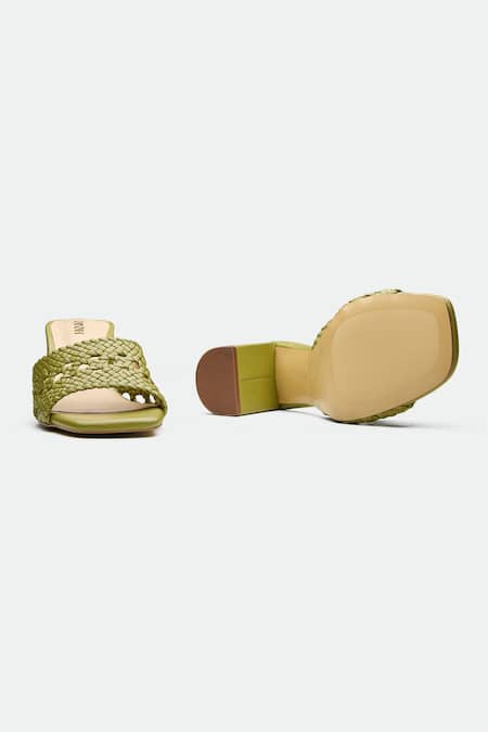 Woven leather upper with cut-out details, 2.6-inch block heel for comfort, Open toe design for breathability
