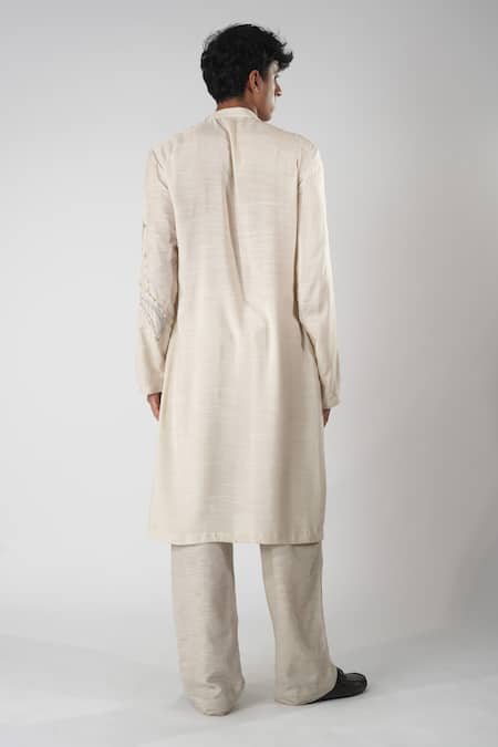 Beige kurta featuring Aari and Zardozi embroidery