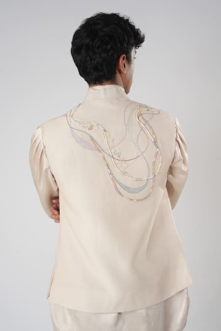 Beige bundi featuring Aari and Zardozi embroidery