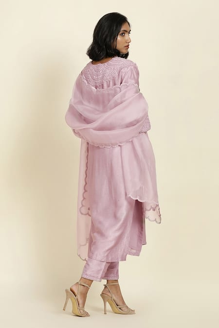 Buy_Oshi By Shikha_Purple , Organza Sequins, Embroidery V-neck Tonal Kurta Pant Set