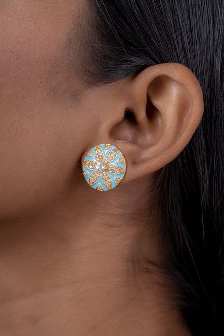 Buy_Osvag India_Blue Diamonds, Stones Floral Encrusted Studs _at_Aza_Fashions