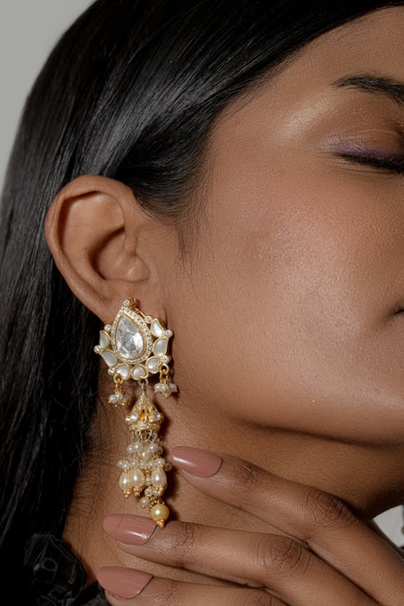 Buy_Osvag India_Gold Plated Stones, Pearls Polki Embellished Jhumkis _at_Aza_Fashions