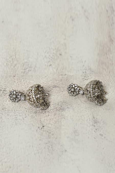 Buy_Our Purple Studio_White Semi Precious Stones American Diamond Floral Jhumkas _Online_at_Aza_Fashions