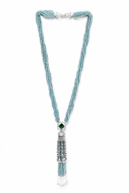Buy_Our Purple Studio_Blue Embellished Long Pendant Necklace_at_Aza_Fashions
