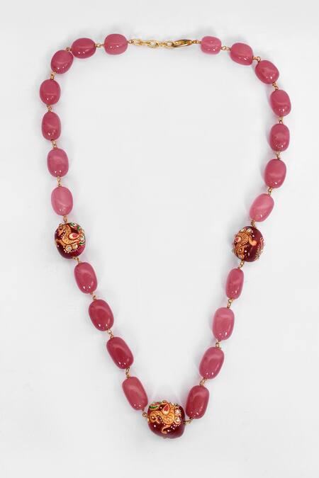 Our Purple Studio_Pink Hand Painted Beaded Necklace_Online_at_Aza_Fashions