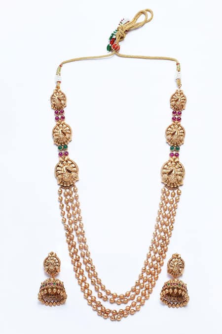 Buy_Our Purple Studio_Gold Plated Crystals, Stones Peacock Carved Motif Necklace Set _Online_at_Aza_Fashions