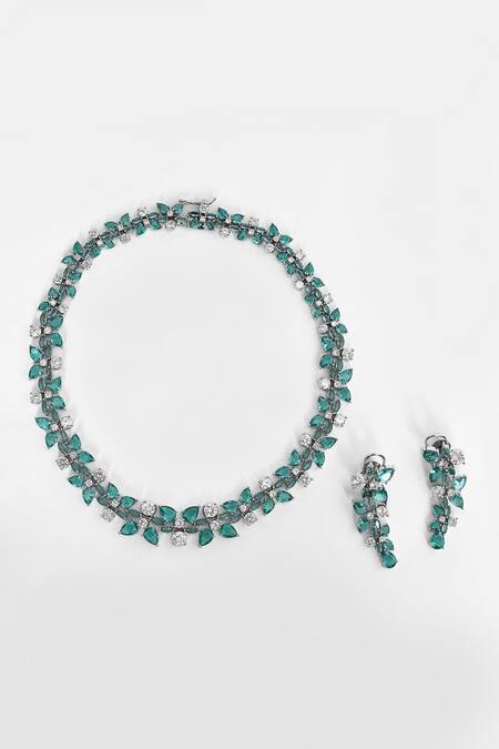 Buy_Our Purple Studio_Green Crystals, Stones Studded Floral Vine Necklace Set _at_Aza_Fashions