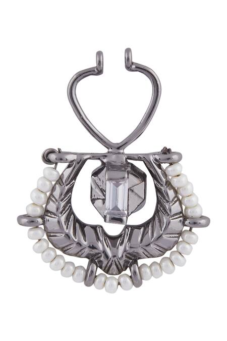 Gun metal plated nose ring embellished with crystal and pearls