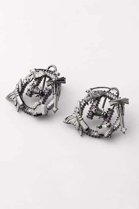 Silver Plated Crystals Cutwork Studs