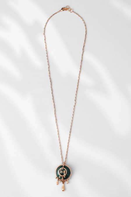 OH monogram dripping effect pendant, Natural semi-precious malachite base, Nickel-free composition
