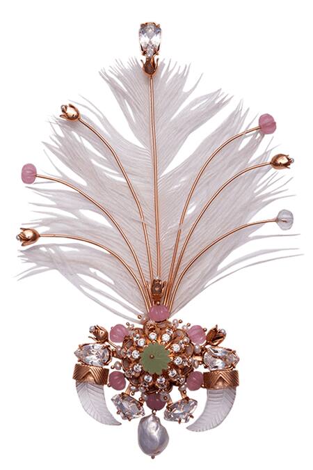 Faux feather embellishments, Carved melon-floral motifs, 3D design elements