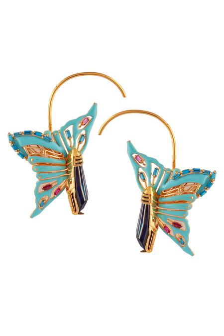 Handcrafted butterfly design, Turquoise enamel detailing, Swarovski crystal embellishments