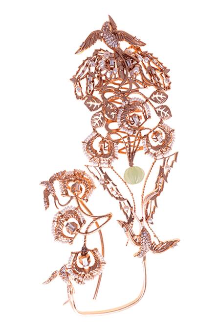 Gold Plated Pearls, Stones Jardin Couture Ear Cuff