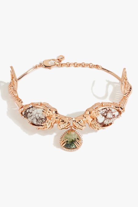 The choker features sculpted leopard forms and natural stones, suggesting a contemporary or fusion style suitable for modern evening wear.