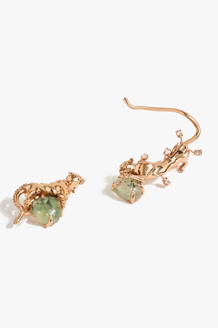 Leopard's tail curl design, Prehnite drop stone, Oval & round cubic zirconia embellishment