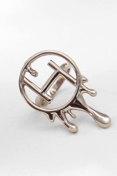 Silver ring featuring an 'OH' monogram cutwork shape with a dripping effect